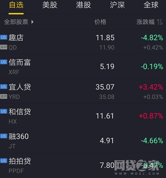 具体来看,行情数据显示,拍拍贷收盘跌6.47%,报7.80美元;趣店跌4.82%,报11.85美元;融360跌4.66%,报4.91美元;信而富跌0.19%,报5.19美元。