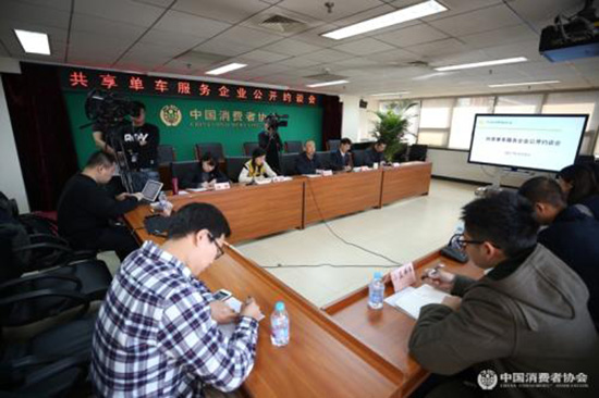 中消协在京召开共享单车企业公开约谈会。 图片来源:中消协官网