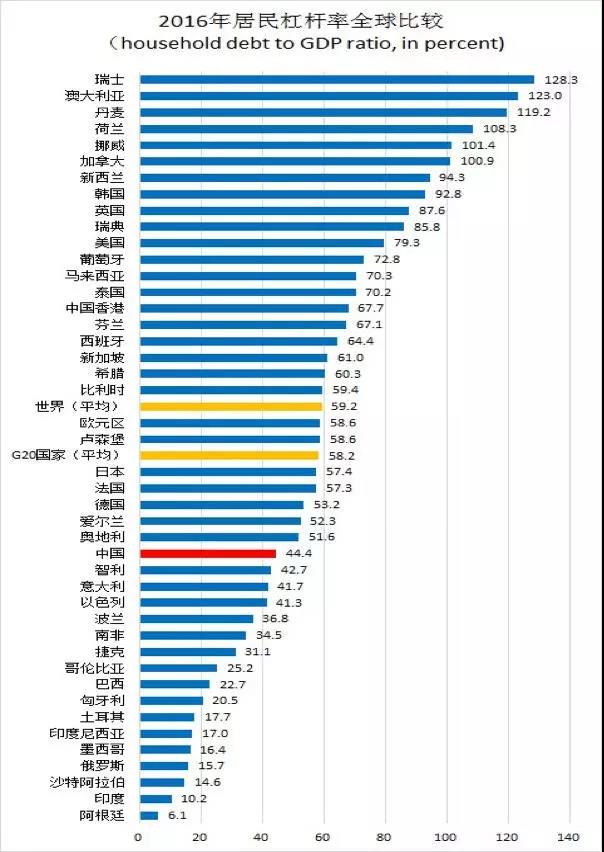 图四:2016年居民杠杆率全球比较