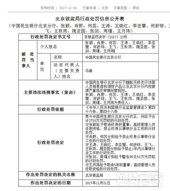 转载请标注:信息网——民生银行16亿假理财案落锤 罚2750万3人遭禁