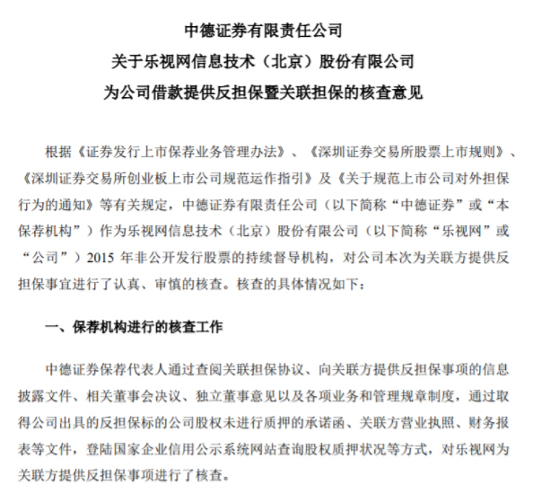 中德证券也指出,但由于本次关联借款涉及质押担保财产的公允性待审计评估后确定,且乐视投资作为质押资产的有效性存在不确定性,以及本次关联借款涉及的乐视投资及乐视云股权目前处于质押状态,故本保荐机构对本次关联借款事项发表保留意见。