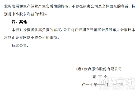 据悉,步森股份是成网络小贷叫停后首家终止设立的公司。