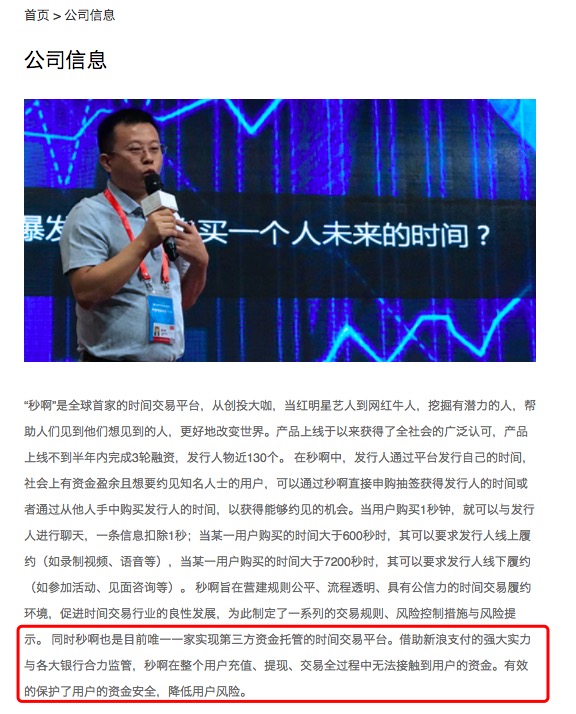 秒啊官网自称是目前唯一一家实现第三方资金托管的时间交易平台。