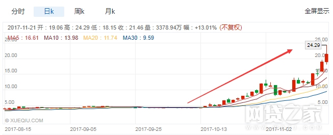 在过去一个月,该股累计上涨了1.9倍,而10月中旬以来则上涨了3.4倍,7月以来上涨更是达到5倍,如果自年初算来则上涨了3.8倍。