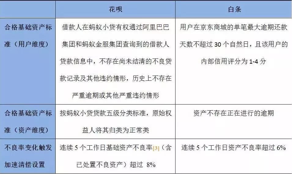 兴业银行投资银行部区域主管梁璐璐在近期的报告中指出,据CNABS数据显示,截至2017年11月,京东以“白条”作为基础资产在交易所和银行间市场成功发行18单共计233亿资产证券化产品,其中包括1单银行间市场资产支持票据(ABN),其余17单均在深圳证券交易所发行。重庆阿里小贷则以“花呗”相关资产作为基础资产在上海证券交易所发行45期共计800亿“德邦花呗”资产支持专项计划,3期共计42亿的“第一创业花呗”资产支持专项计划。另外的“花呗购物节”是专为双11购物节针对用户的临时提额花呗资产,因为临时提高了额度,因此在基础资产标准上略有不同,但入池资产性质及表征基本一致。
