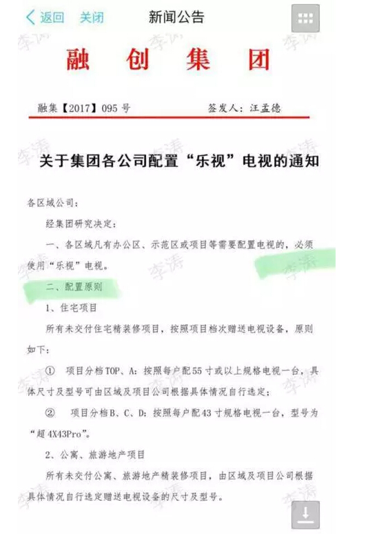 实际上,在拯救乐视致新上,孙宏斌已经有了实质性举措。就在11月14日,有消息称,融创中国已告知各分公司,如需配置新的电视则优先选择乐视品牌,以帮助乐视致新去库存。