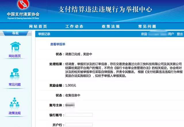 根据上述律师提供的截图,经中国支付清算协会调查,举报所涉及的订单信息,存在交易资金通过北京三快科技有限公司及其关联公司结算给美团平台商户的情况,不符合《银行卡收单业务管理办法》的相关规定,协会将对涉及的相关被举报单位采取自律措施,并责令其整改。