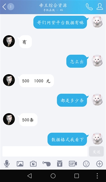 新京报记者调查发现,用户资料在现金贷平台与中介、平台与平台之间倒卖已不是秘密。标价则根据数据的“新旧”程度而定,价格在0.1元至1.5元/条不等。