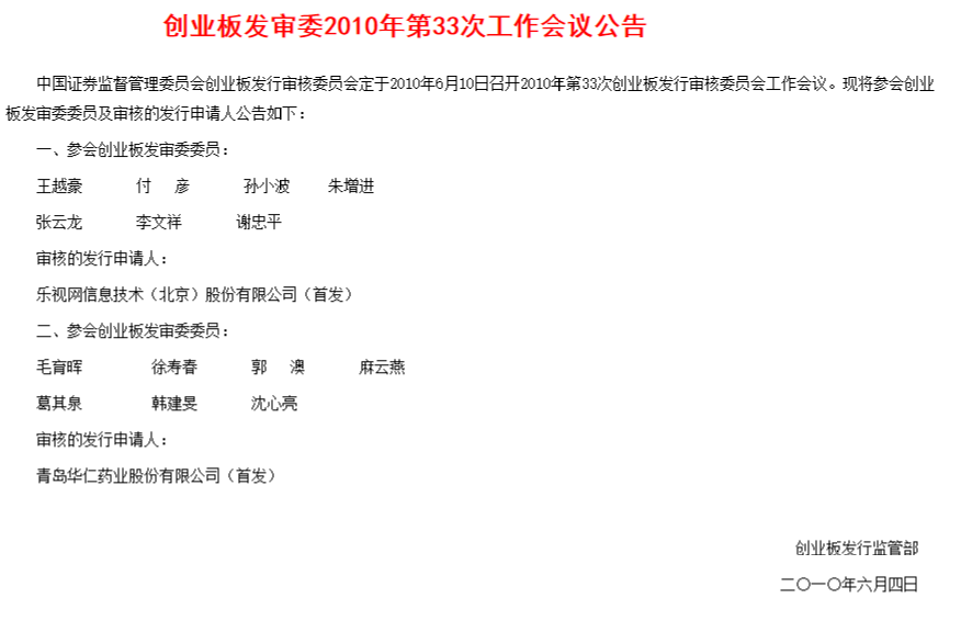 乐视网于2010年6月首发通过,8月登陆创业板,成为中国视频行业第一家上市公司。上市交易价格超过发行定价60%,接近47元。