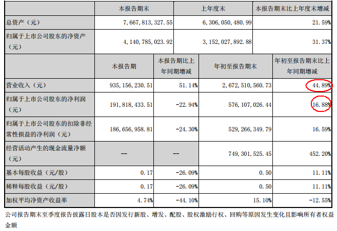 其中,今年第三季度,昆仑万维营业收入9.35亿元,同比增长51.14%;净利润1.92亿元,其中投资收益2134万元,而去年同期投资收益为2.46亿元,导致第三季度净利润同比下滑22.94%。第三季度扣非净利润1.87亿元,环比第二季度增长18.91%,主营业务增长。