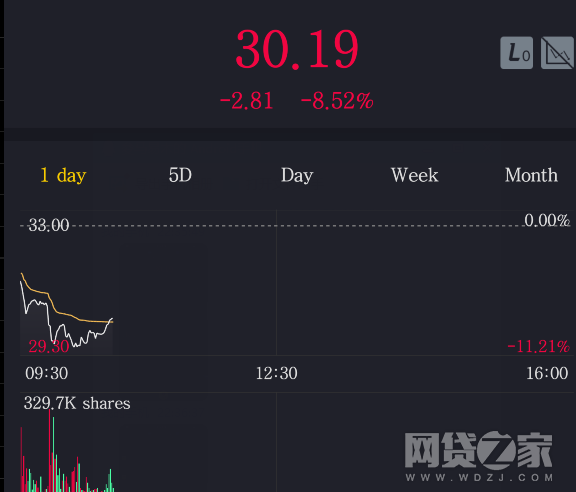 截止发稿时,趣店股价小幅回升到30.18美元,跌幅为8.52%