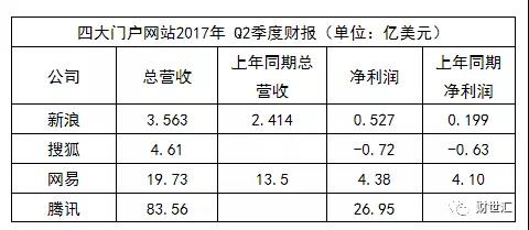 从四大门户网站2017年第二季度的财报和市值走势来看,四大门户网站发展各有不同。几乎同时间起跑的腾讯已经遥遥领先,曾经的骄子搜狐却连续四年亏损,只能不断寻求新的变现出路。