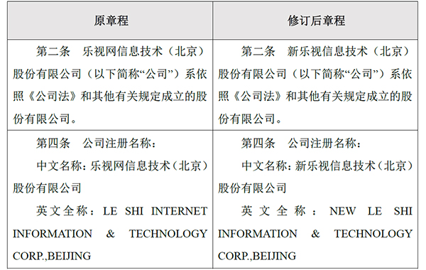 乐视网更名为新乐视,公司章程也作出修订