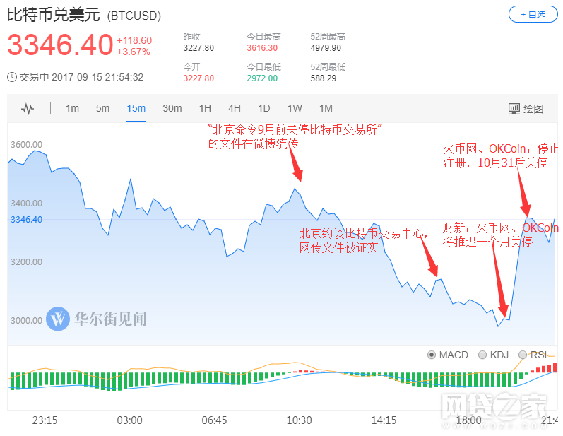 北京时间9月15日上午十点半左右,一份“北京监管机构命令将在9月前关停辖区内比特币交易所”的文件在微博上流传,比特币开始下挫。