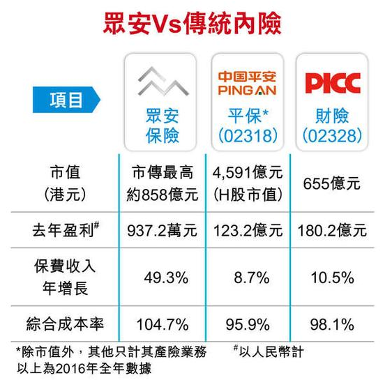加上,早前上市的美图,其虽未获得盈利,但坐拥逾亿计客户群的卖点,从股价上已反映出投资者亦乐于接受。该投行人士补充,众安保险的客户群接近5亿名,过去3年更录得盈利,证明其盈利模式更胜美图。他称,‘虽然公司预期本年首季亏损,但往绩说明公司是有能力赚钱。’