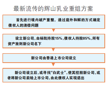 8月初,辉山乳业债权重组方案曝光,其核心内容为,辉山乳业以体系内外资产全部抵债,由债权人组成新公司,但要让渡一部分新公司股权给现管理层。按这一方案,境内外债权人的清偿率为14%-20%。对于该重组方案,辉山乳业方面回复称“以公告为准”。