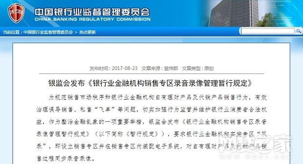转载请标注:信息网——银监会布发银行理财双录暂行规定 严打“飞单”