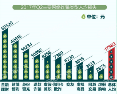 公安部此次公布的打击电信网络新型违法犯罪数据,与360手机卫士发布的《2017年第二季度中国手机安全报告》(以下简称:报告)中的结论高度契合,报告指出2017年第二季度,猎网平台共接到来自全国各地的网络诈骗举报6807起,涉案总金额高达1.2亿元,人均损失17582元。