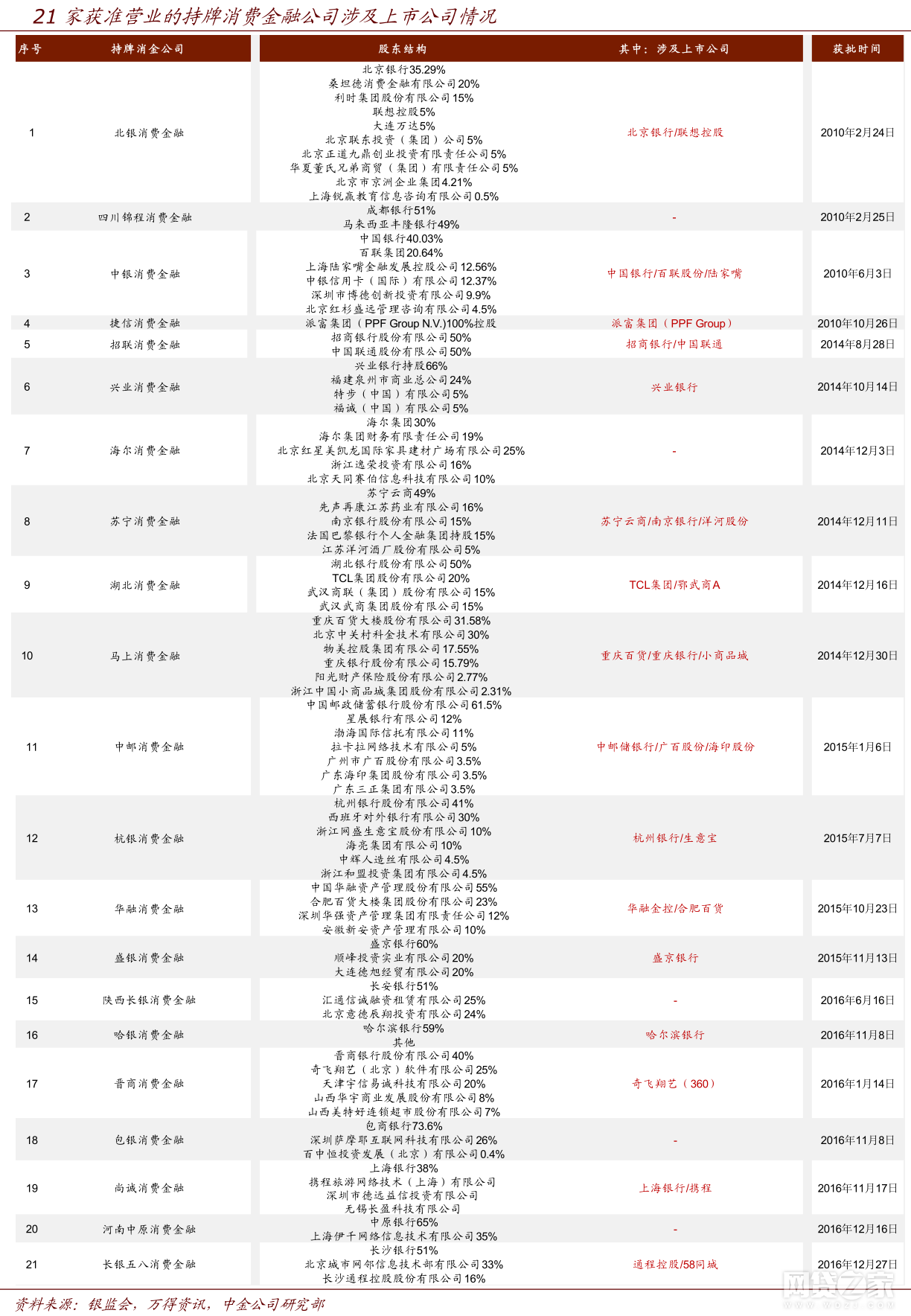 附:21家获批开业的消费金融公司名单(来源:中金公司整理)