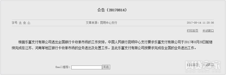 转载请标注:信息网——乐富支付清场工作收尾 8月20日前从两省退出
