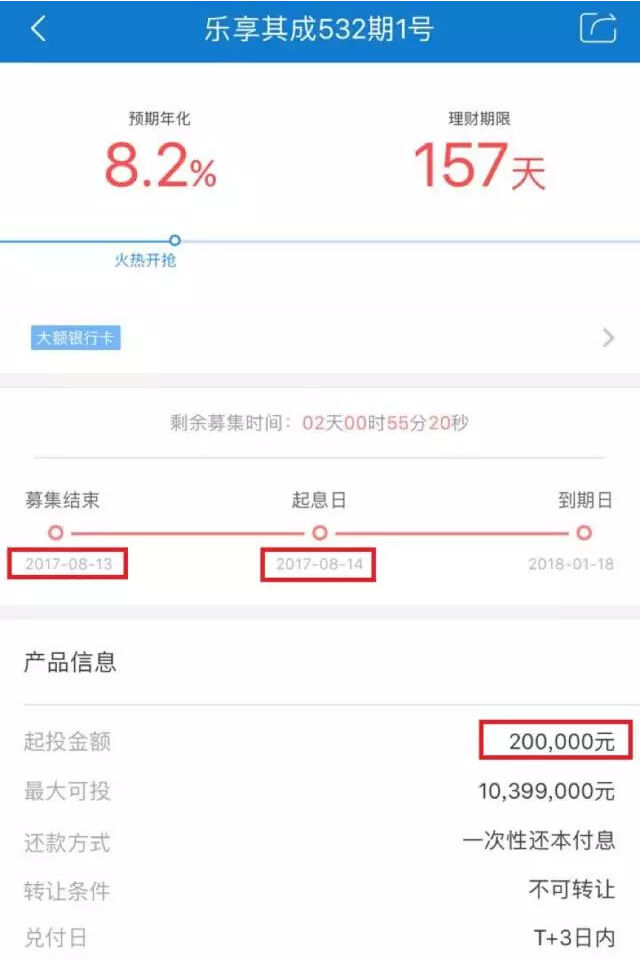 7%收益率的533期1号产品的投资者很少,但加息到8.2%的532期1号产品,尽管认购起点高了一倍,达到了20万元,仍有更多投资者购买。