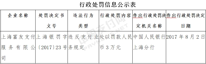 转载请标注:信息网——第四次被罚!拟上市的富友支付吃央行3万罚单