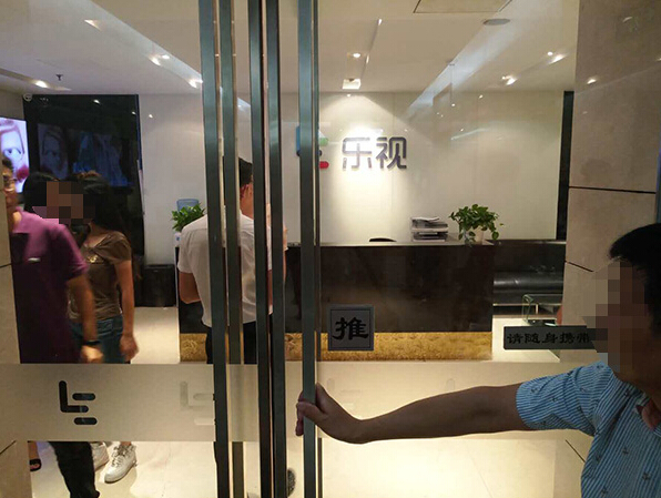 8月8日,在乐视大厦大堂讨债40余日的20余名乐视移动供应商进入乐视大厦,求见乐视移动代理CEO阿木。