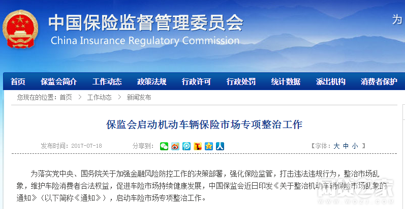 转载请标注:信息网——保监会启动车险市场专项整治 划三大管控重点