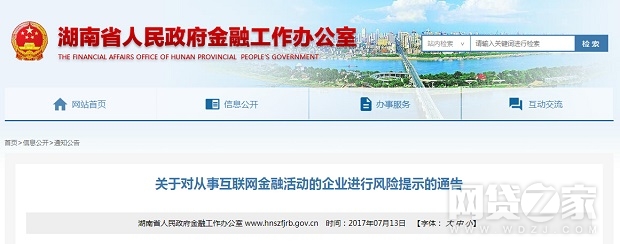 转载请标注:信息网——湖南对互金平台发风险提示 已立案10余家机构