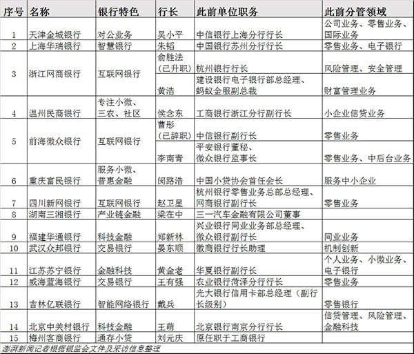 转载请标注:信息网——15家民营银行行长盘点:挖角频出 两位已离职