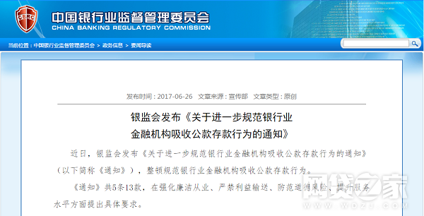 网络整理 2021-03-22 20:55近日,银监会发布《关于进一步规范银行业金融机构吸收公款存款行为的通知》(以下简称《通知》),整顿规范银行业金融机构吸收公款存款行为。