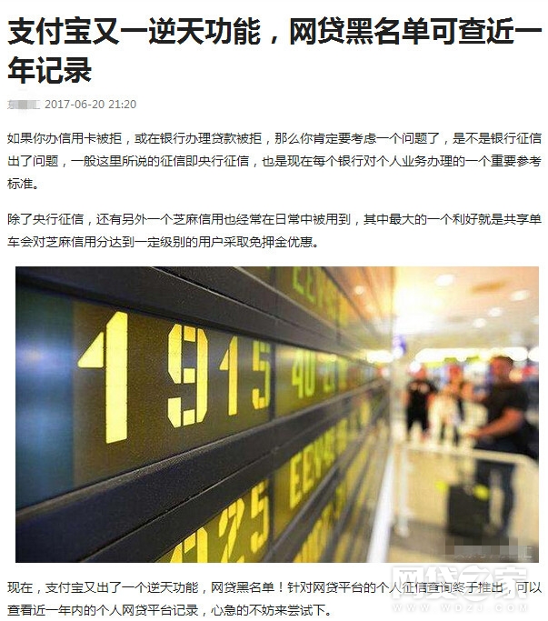 网络整理 2021-03-22 20:59网贷之家讯 6月21日,网上流传一则消息称,支付宝又推出一项新的功能,即针对网贷平台的个人征信查询,可以查看近一年内的个人网贷平台记录。此消息还附着查询“攻略”,从登陆支付宝页面到查询结束,步骤十分详细。