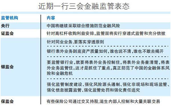 事实上,一行三会正在合力整治交叉业务风险。据悉,央行牵头,会同银监会、证监会、保监会正在制定统一的资产管理产品标准规制。