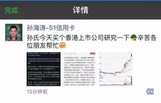 网络整理 2021-03-22 21:434月24日晚间,51信用卡CEO孙海涛在其微信朋友圈透露,“买了个香港上市公司”。