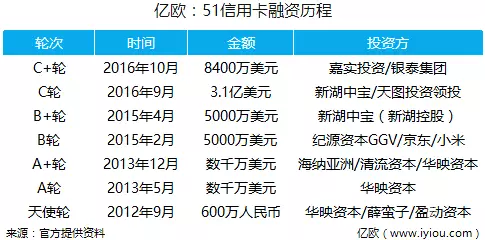 去年10月26日,51信用卡完成8400万美元的C+轮融资,由嘉实投资和银泰集团联合投资。