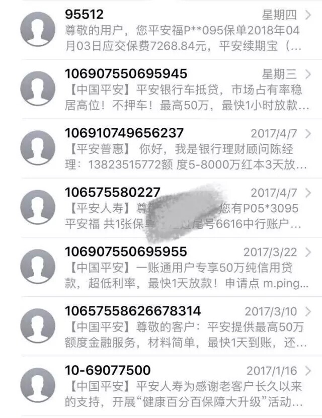 不过话说回来,如果有平安高层看到本文,能不能请咱领导正视一下高频销售这个问题。毫不夸张地说,我即使不是每天,也有个每两天就要接到各种来自平安的电话。