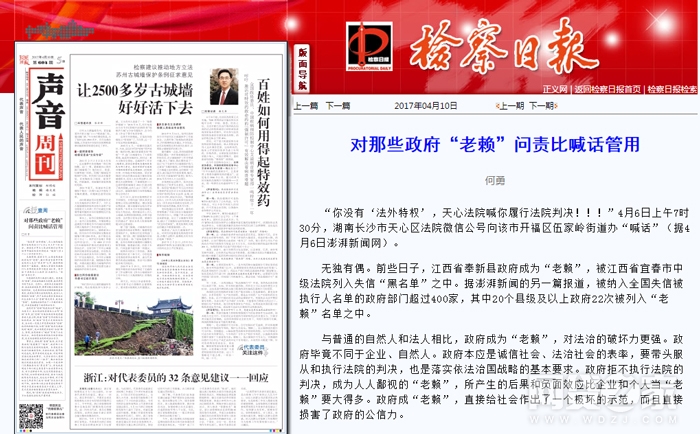 转载请标注:信息网——检察日报刊文:问责政府“老赖”比喊话管用