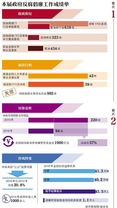 李克强提出五点要求:一是以深化“放管服”改革进一步铲除滋生腐败的土壤。用清单管理推动减权、规范用权,除涉及重大安全和公共利益等事项外,行政审批事项原则上都要依法依程序取消,创新事中事后监管保障廉洁执法、公正执法,采用大数据等技术手段让监管全过程“留痕”,提高监管效能。
