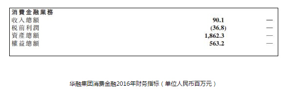中国华融2016年度业绩报告显示,在消费金融业务方面,华融消费金融2016年收入总额为9010万,资产总额达到18.623亿元,但是税前利润则亏损3680万元。
