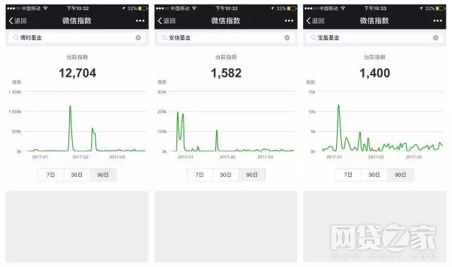 在同类型的机构中,指数也会出现较大的差异性。比如博时基金的微信指数有12704,而宝盈基金只有1400。因为博时是业内首屈一指的大基金,而宝盈基金则不太出名,客户较少。