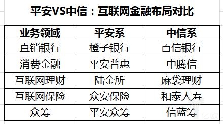 财富2016年世界500强排名当中,平安集团名列第41位,中信集团名列156位。对比这两家金融控股集团在互金领域的布局,可以发现一个有意思的现象: