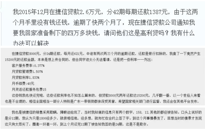 转载请标注:信息网——在捷信贷款1.6万要还4万 揭消费金融"收费"乱象