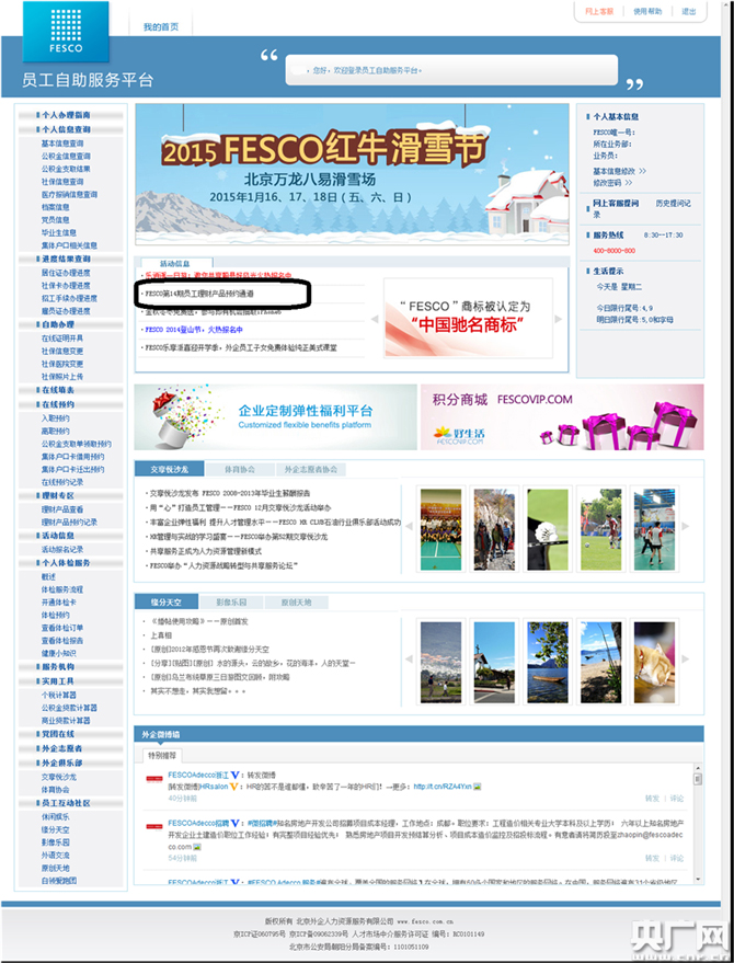 FESCO在员工自助服务平台上推荐理理财产品