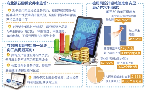 去年以来,我国银行业把防范和化解风险放在更加突出的位置,多个重点领域存在的风险得到了综合排查整治,今年还将继续严管交叉性金融风险,严治互联网金融风险,严控违规操作风险,强化法人监管和行为监管。在保持金融业健康稳定发展的同时,为经济发展营造良好金融环境