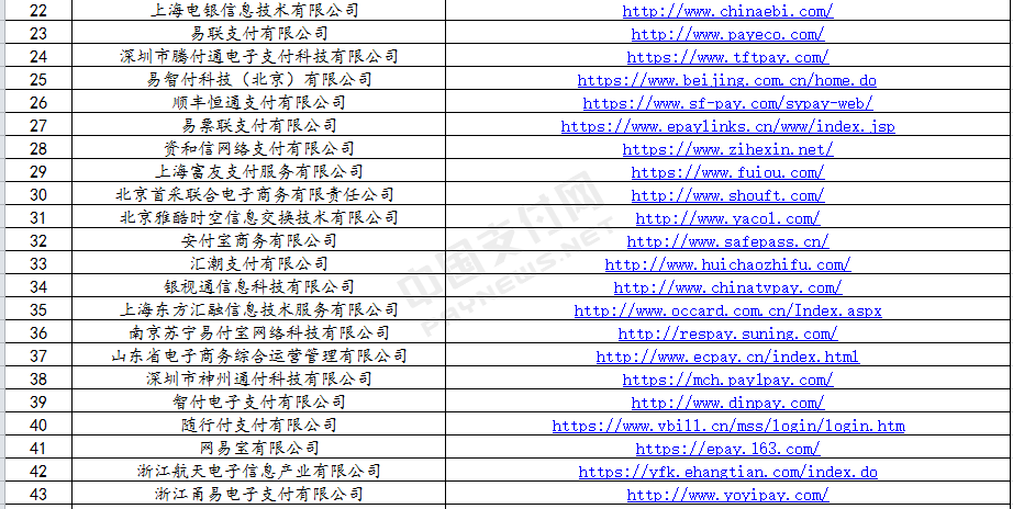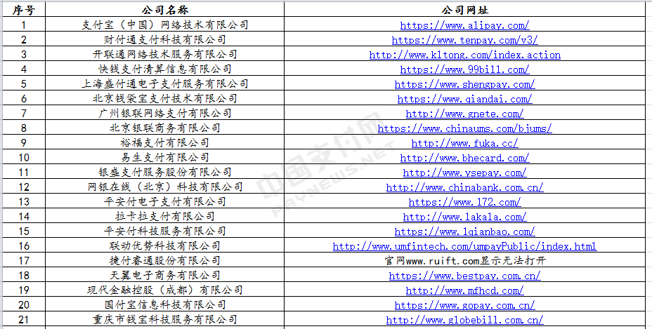 未公示的支付机构中 涉及诸多知名公司