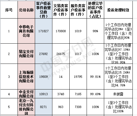 仅有47家支付机构进行公示 中移电商客户投诉数量惊人