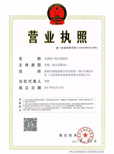 公开资料显示,众惠相互成立于2017年2月14日,是中国首家经保监会批准设立的全国性相互保险组织。众惠相互位于深圳前海,初始运营资金10亿元,主营业务包括信用保险、保证保险、短期健康和意外伤害保险等。