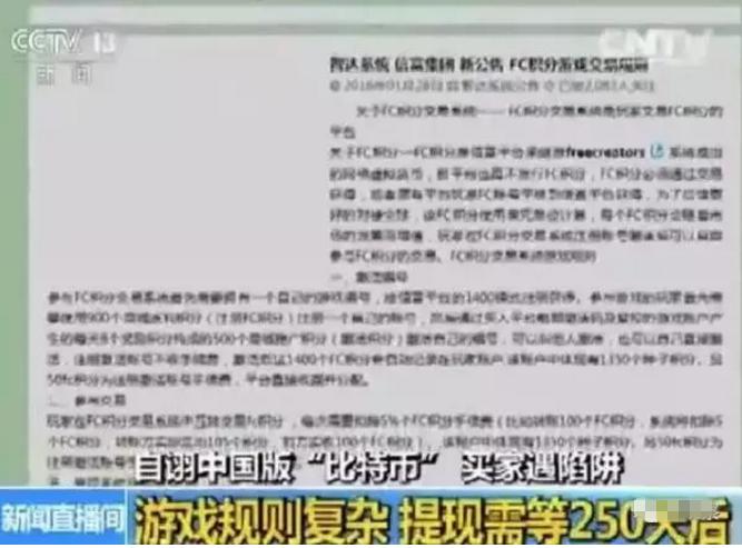 据IF观察了解,此前,央视曾点名了号称“中国第一虚拟货币”的FC虚拟货币涉嫌传销、虚假诈骗,宣称“250天收益100%”。然而250天之后投资者却无法将资金提现面对无法提现的质疑,公司表示制度改变了,没有提现功能,需要将自己的货币转卖给别人后才能将自己的虚拟货币变成现金。报道称,这其实就是传销过程中的“拉人头”。