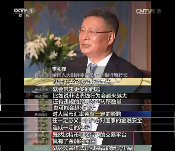 李礼辉表示,既然比特币和比特币的交易平台具有了金融的属性,就必须装进法律和监管的笼子里头。