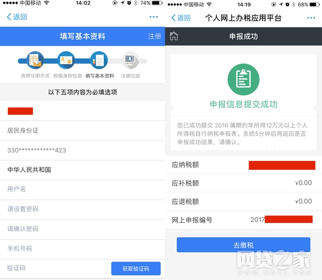 完成注册后,直接进入到“个人网上办税应用平台”,点击“申报管理-年所得12万以上自行纳税申报”,系统会自动显示纳税人2016年的工资薪金等所得。完善“个人基础信息”、“单位及税务机关信息”保存后,如果有工资薪金收入,点击“工资薪金所得”再保存。
